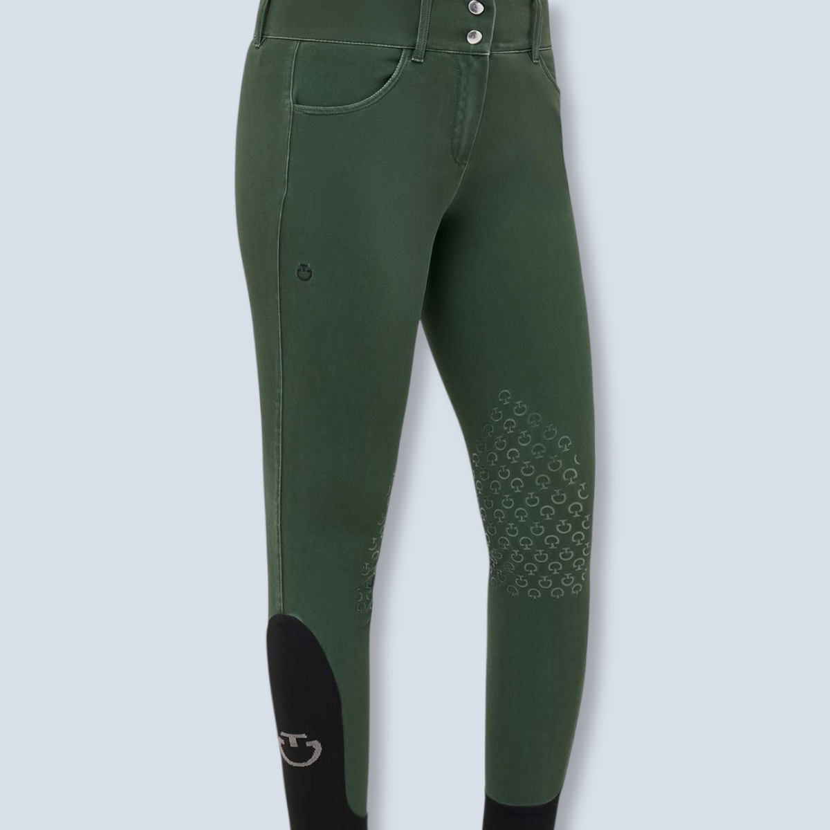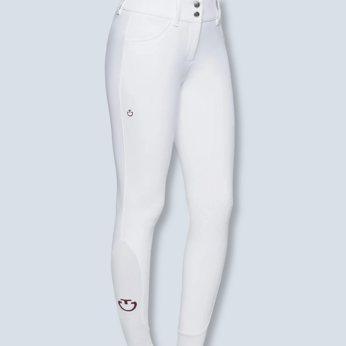 El tejido técnico bielástico utilizado en la confección de los pantalones de equitación Cavalleria Toscana para niña garantiza la máxima comodidad, adaptándose perfectamente a los movimientos del cuerpo durante la equitación. Además, el tejido es transpirable y antibacteriano para una mayor comodidad durante el entrenamiento. El grip transparente en la rodilla proporciona estabilidad en la entrepierna, mientras que los calcetines elásticos decorados con un logotipo en contraste ofrecen un ajuste cómodo bajo las botas. Los pantalones cuentan con dos bolsillos laterales y cierre de cremallera y botón.
