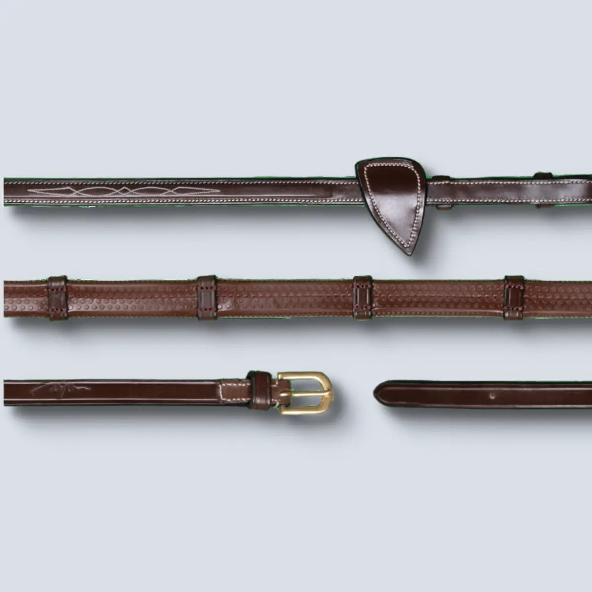 5/8 Hunter Reins With 7 Leather Loops Brown Cob New English Collection - Dyon
