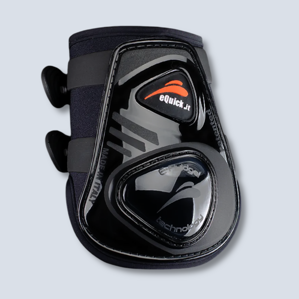 Fetlock boots made with materials of high quality, reliability and durability. Anatomically shaped to wrap around the tendon, protecting from injuries while ensuring comfort. Outer shell reinforced with TPU; soft neoprene lining, washable Lycra edges to prevent sores; two fastening points and elastic strap ensure easy adjustment.
