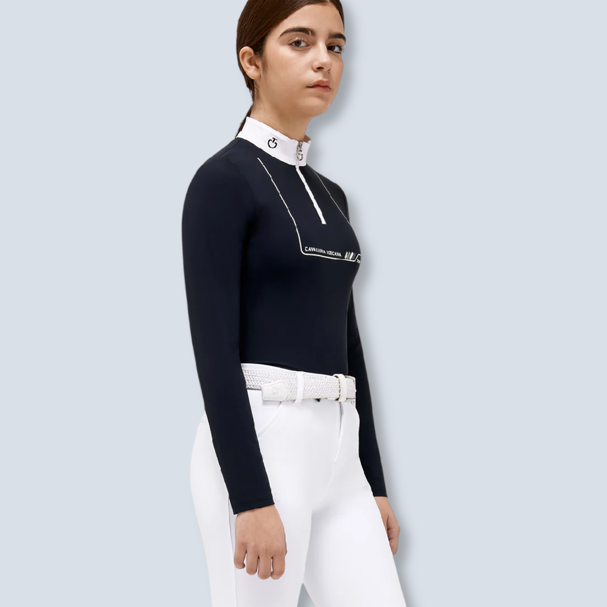 This Cavalleria Toscana team show polo features a fitted silhouette, long sleeves, and a quarter-zip front. Made from high-performance jersey fabric, it offers durability, comfort, and flexibility. Bold team graphics on the front and a signature CT zipper pull complete the sporty, stylish look.