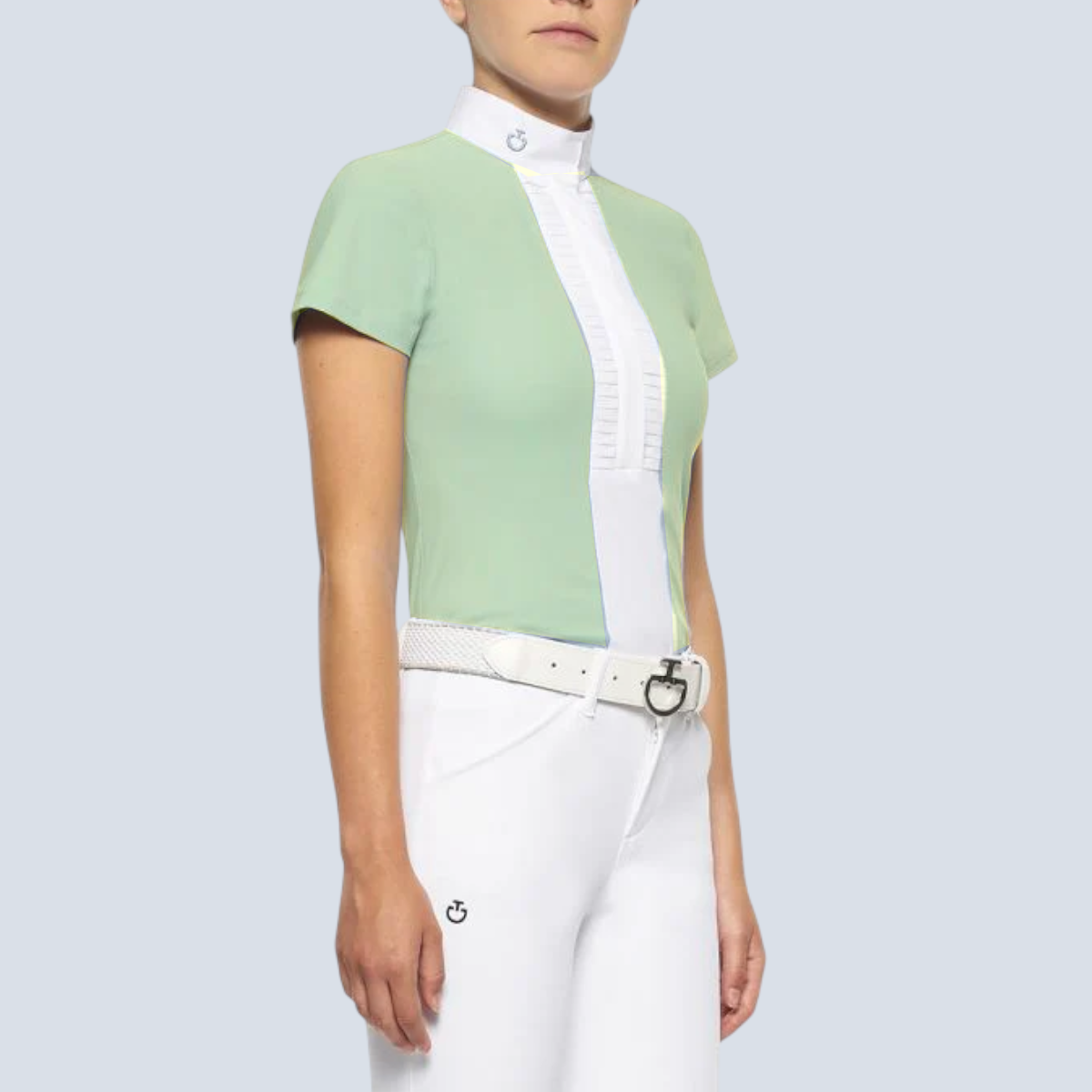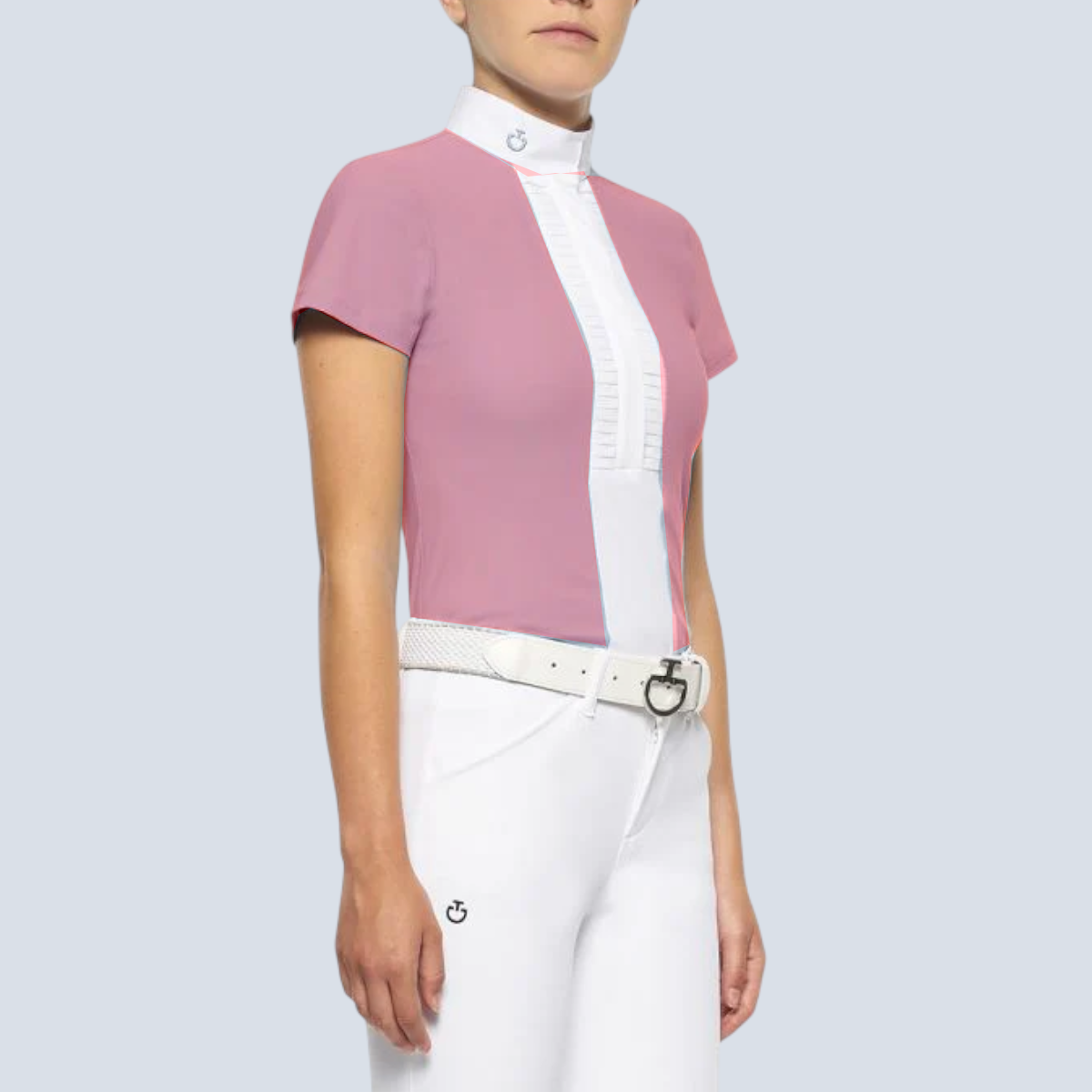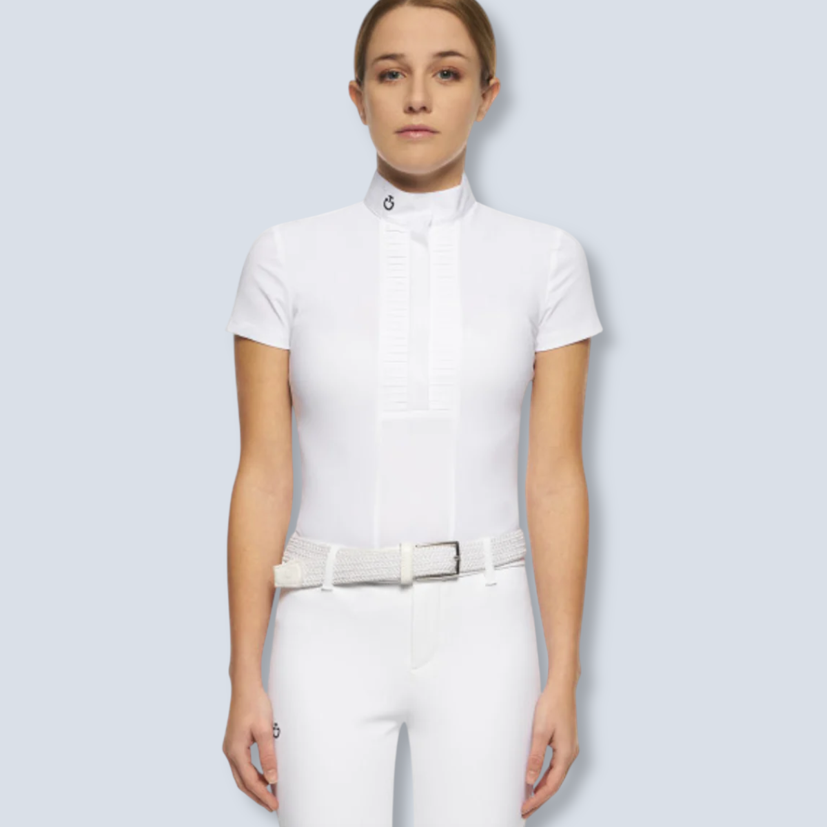 This shirt is the perfect addition to young riders' wardrobes. With an elegant and feminine design, the darts at the back shape the figure by accentuating the waist and creating a fitted cut, ideal for wearing under a riding jacket. A sophisticated two-tone pattern adds a modern and appealing detail, enhancing any look. The high-performance jersey fabric ensures full freedom of movement and excellent breathability.