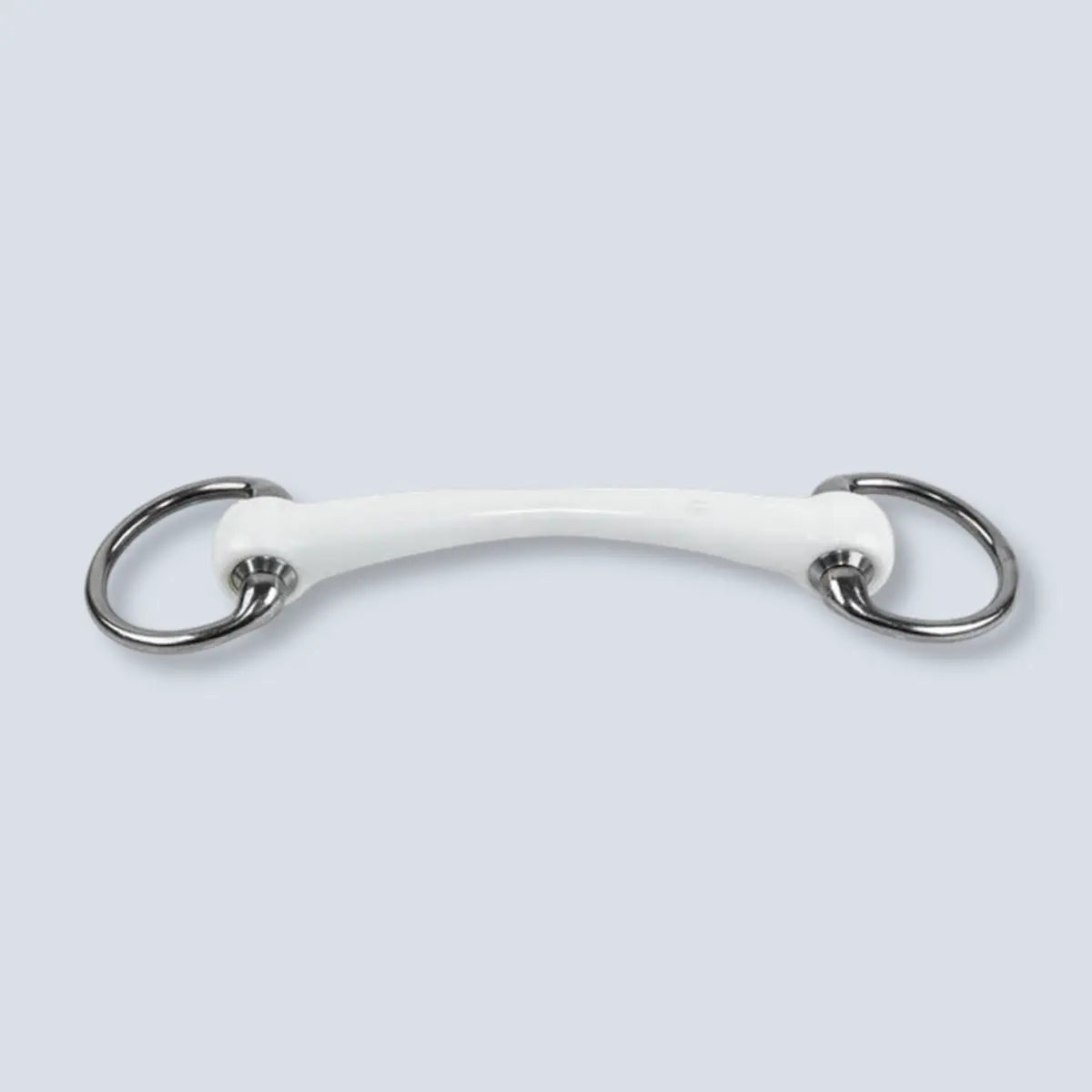 Stable and slightly flexible gag bit with tongue port, ideal for sensitive horses needing mild leverage.