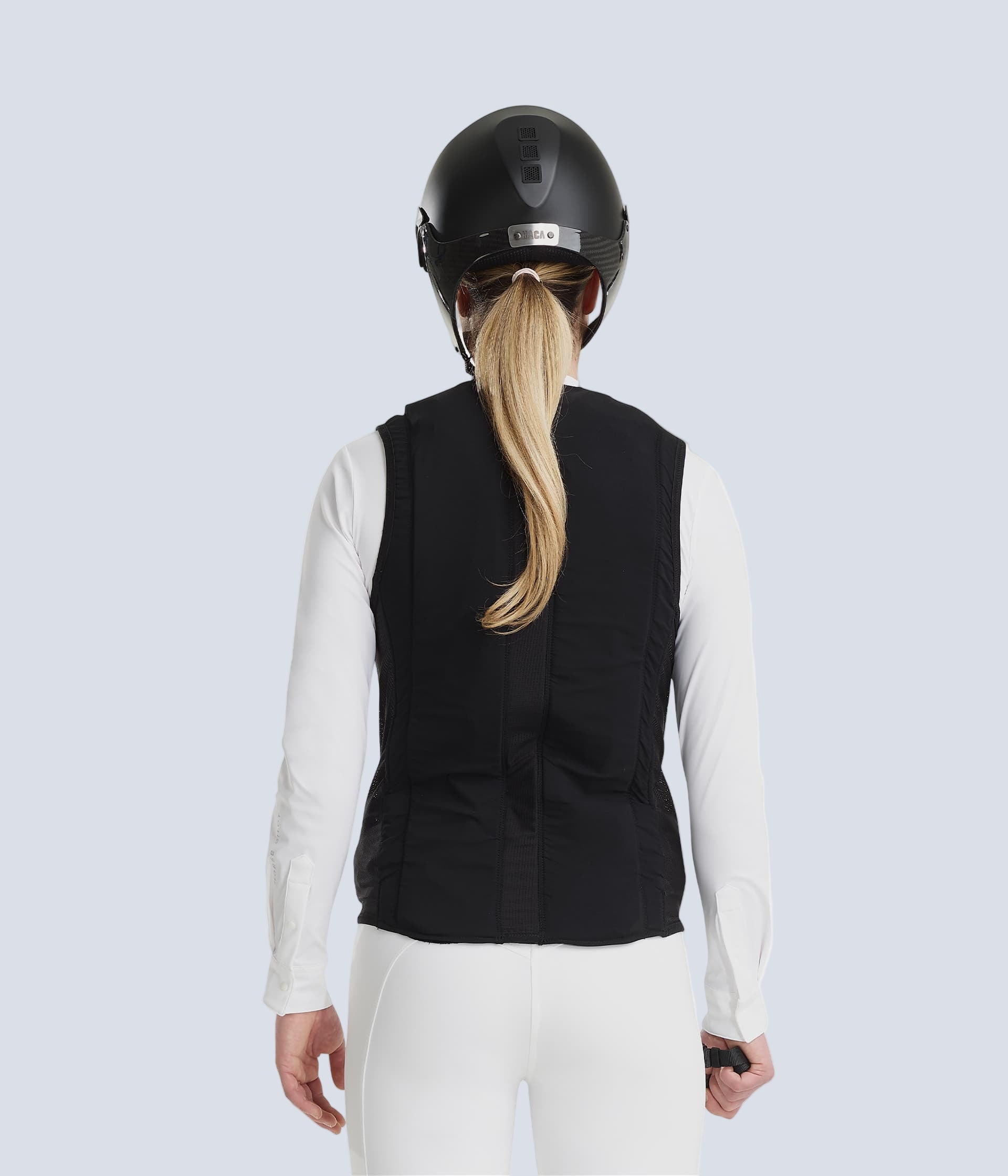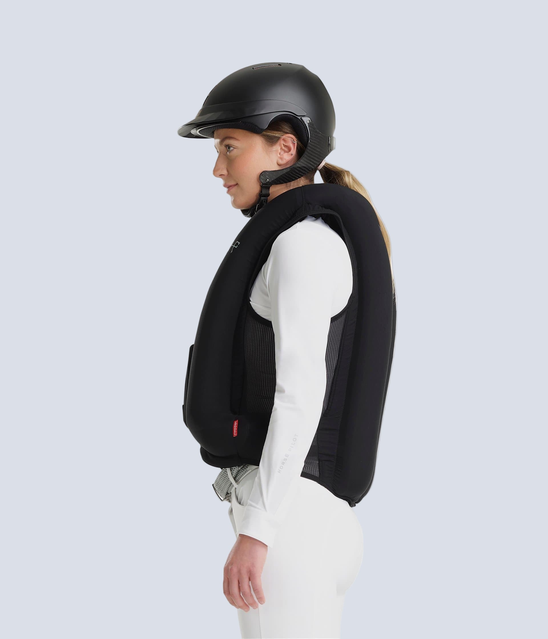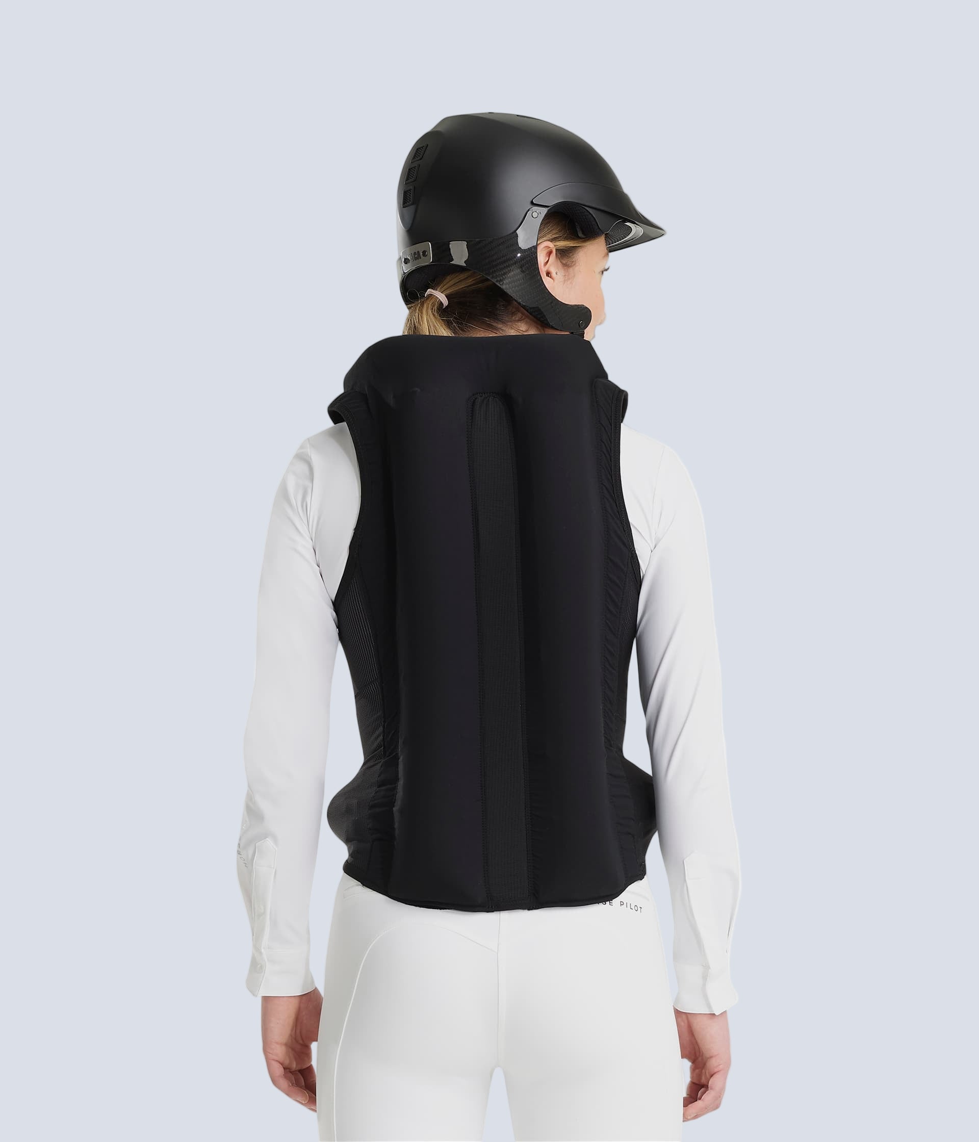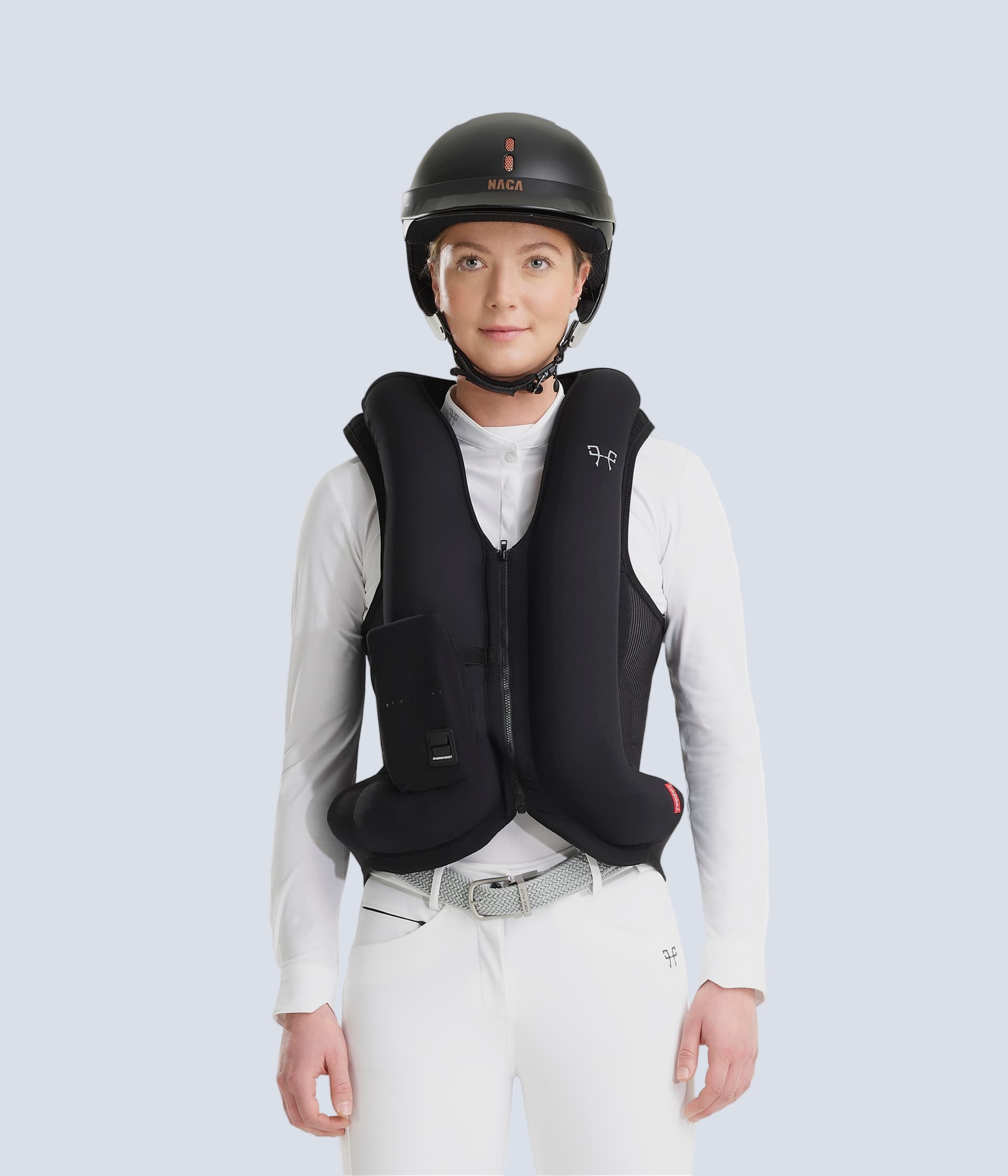 A horseback riding airbag made in France and certified according to the new NF S72-800:2022 standard, ensuring safety, comfort, and discretion all at once. The airbag comes with a securing strap and a gas cartridge included.