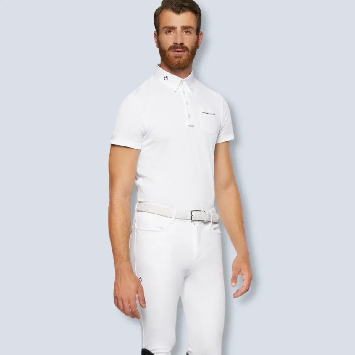 The CT Jersey Piquet is a must-have for riders who want both style and practicality. This polo shirt, made from comfortable white fabric, gives you freedom to move. It has a neat white collar with stripes and a discreet white zipper. Hidden snaps make it convenient. The CT logo on the collar shows your loyalty to the brand. The Eurojersey pocket with a cool black silicone print adds a unique touch. This polo is perfect for competitions, giving you a winning and elegant appearance.