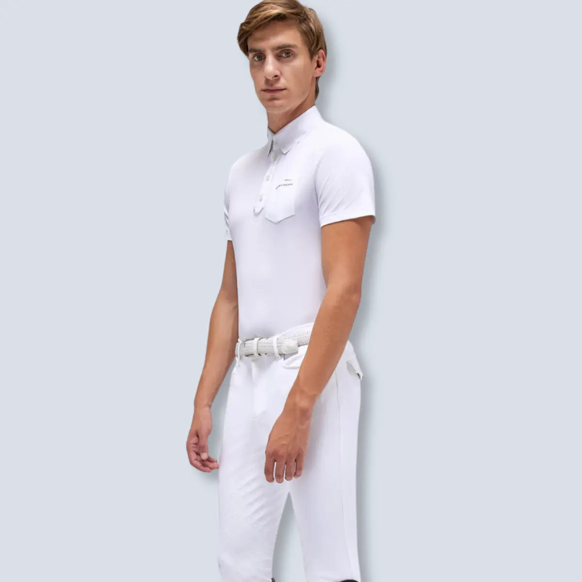 Introducing our meticulously crafted competition polo, designed specifically for men engaged in equestrian competitions. Constructed with high-quality technical piquet fabric, renowned for its durability and breathability, this polo ensures unparalleled comfort and optimal performance during races. The classic and refined appearance is accentuated by the front buttons, adding a touch of sophistication. Meanwhile, the short sleeves are perfect for maintaining a cool and agile feel on warm days. Elevate your equestrian experience with this exceptional competition polo.