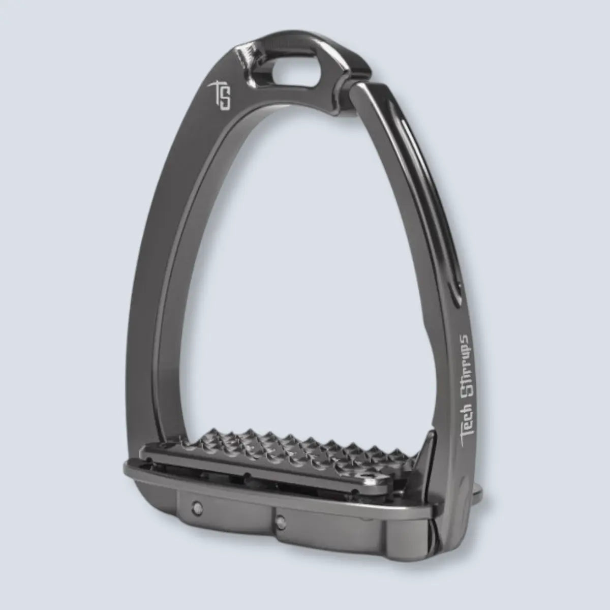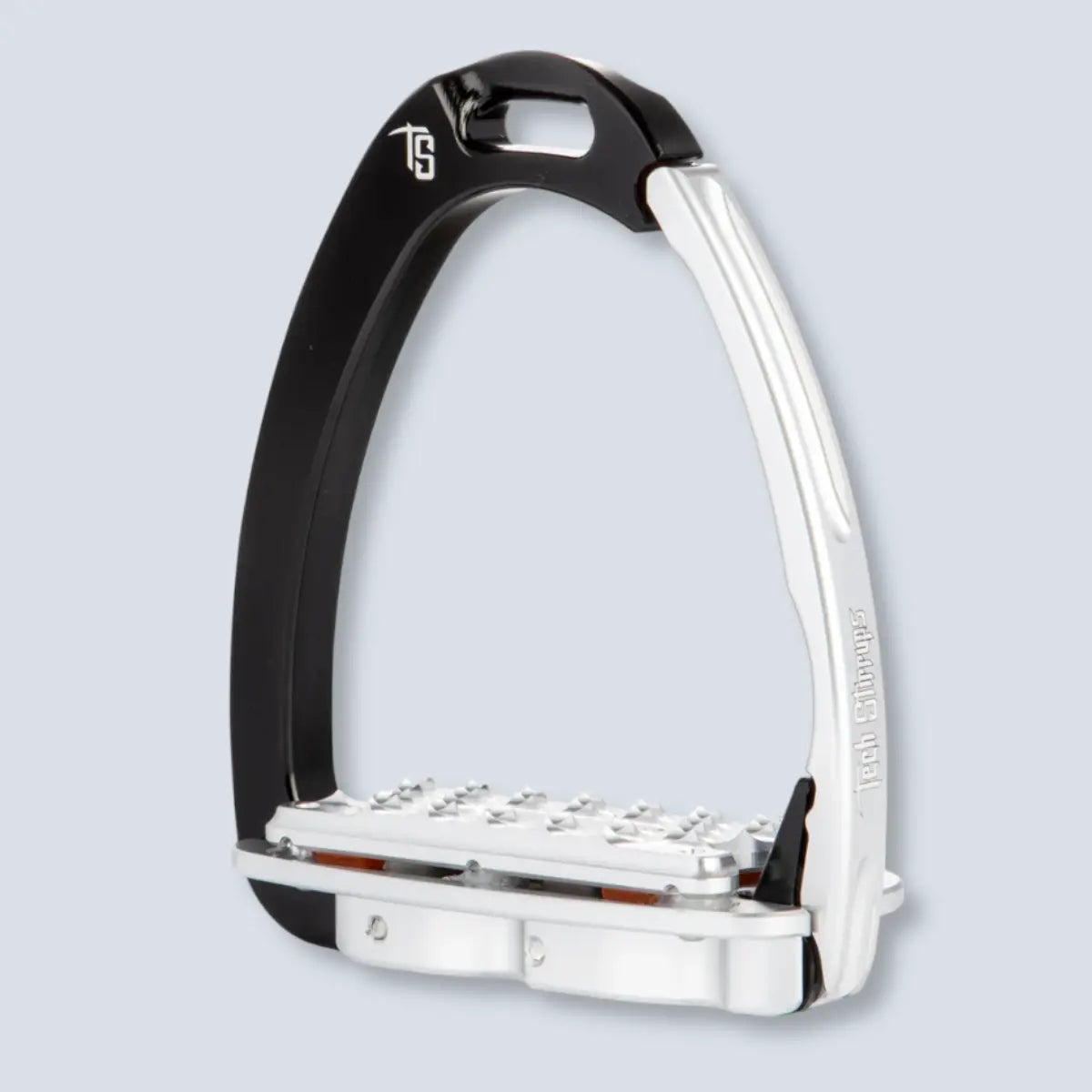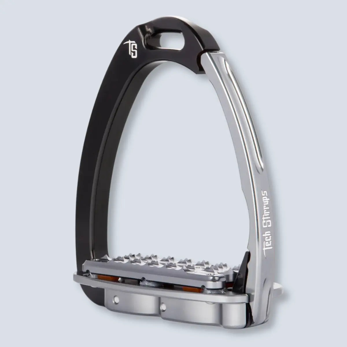 The Tech Stirrups Venice Plus EVO are safety stirrups with the widest lateral opening on the market, designed to release the foot in case of a fall. Four shock-absorbing inserts reduce rider fatigue and impact. The inclined footbed promotes proper posture and helps keep heels down.