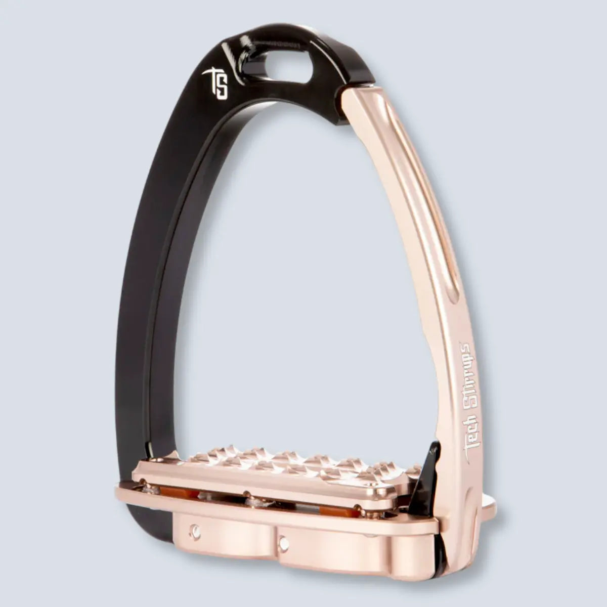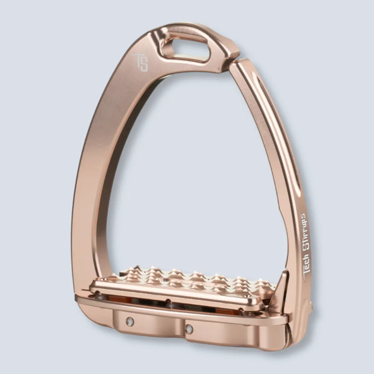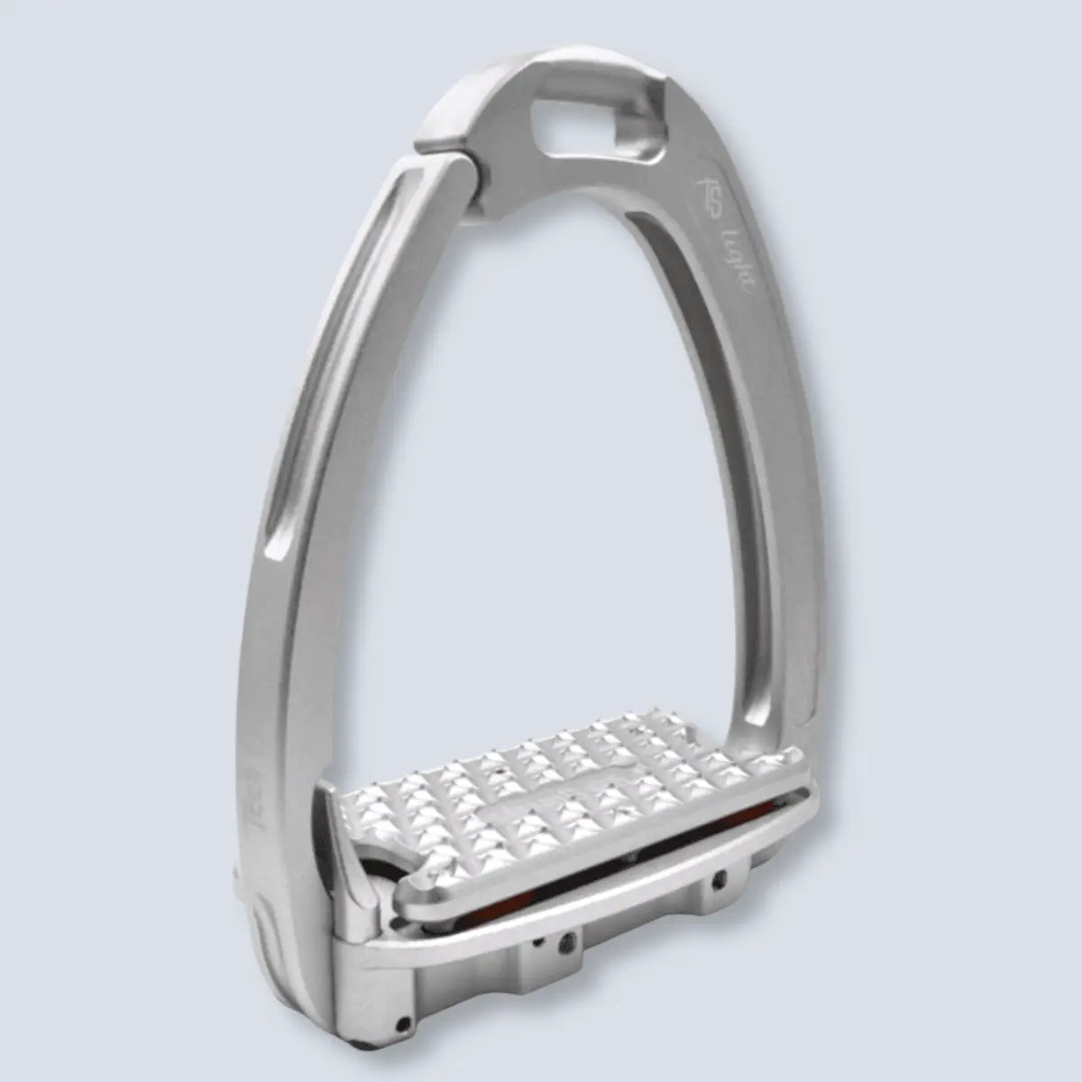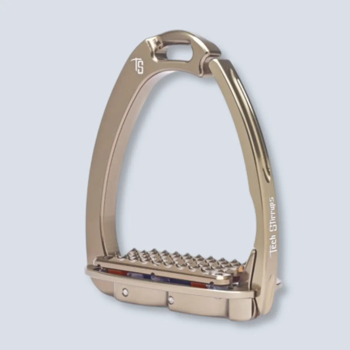 The Tech Stirrups Venice Plus EVO are safety stirrups with the widest lateral opening on the market, designed to release the foot in case of a fall. Four shock-absorbing inserts reduce rider fatigue and impact. The inclined footbed promotes proper posture and helps keep heels down.