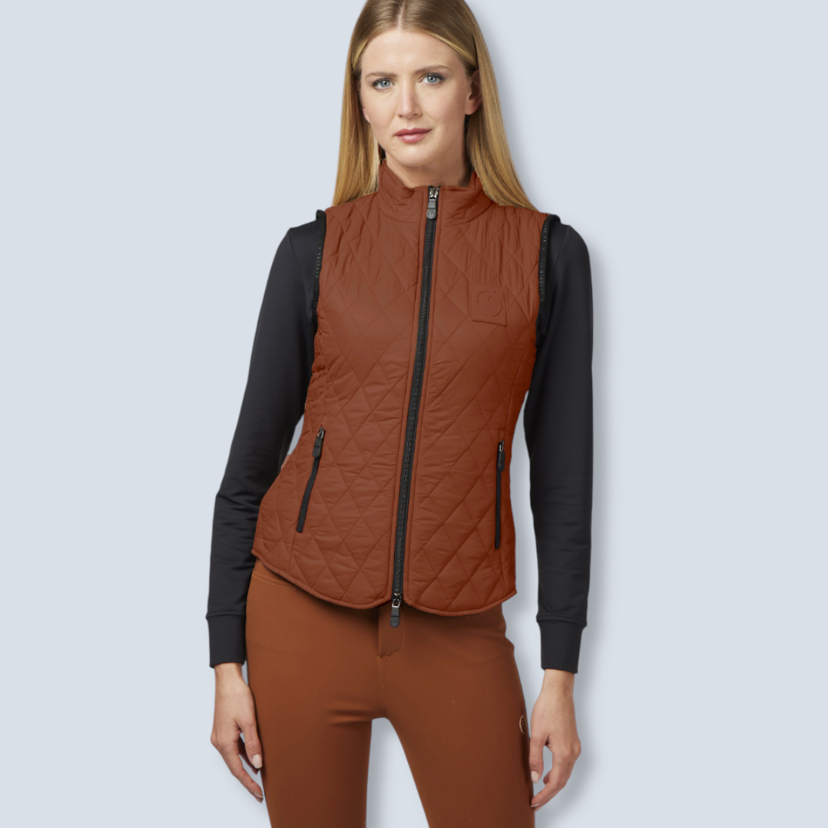 Gunsan is a lightly padded women’s vest with small diamond quilting and contrasting lining. Made of water-repellent and windproof fabric, the vest is perfect for the spring-summer season. The inside of the zipper is embellished with Vestrum lettering. A matching Vestrum lettering. A matching Vestrum patch is sewn on the front.