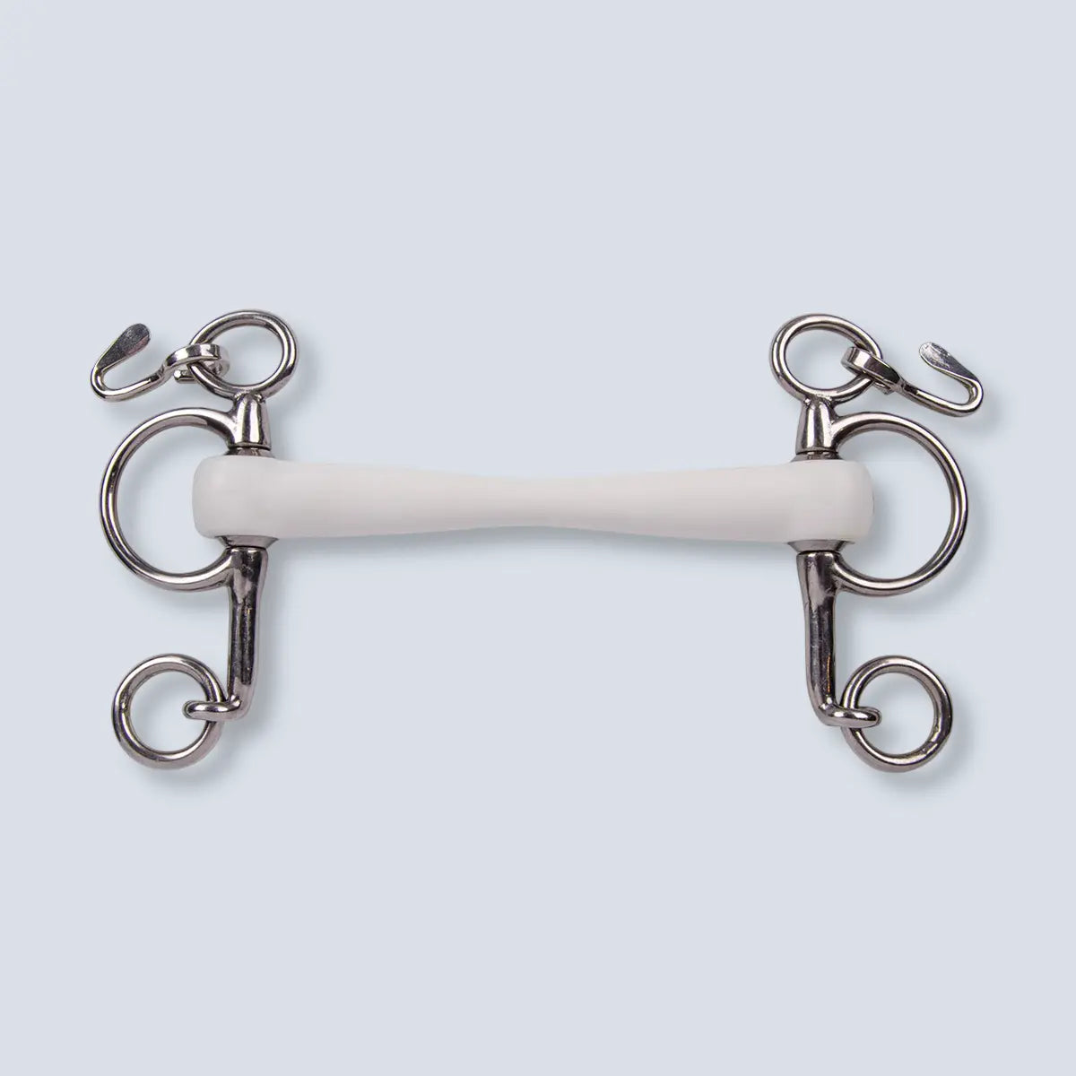 Pelham with a soft, flexible mouthpiece. Provides gentle and comfortable control for sensitive horses.