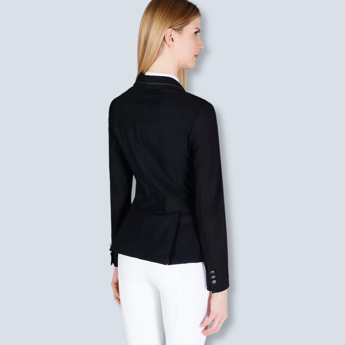 Kyoto is a women’s competition jacket made with a super light bistretch coupled fabric. Very soft to guarantee freedom of movement and breathable. Double fastening on the front: hidden zip and three buttons with Vestrum logo to ensure the closure of the jacket. Piping contrast details, flap side pockets and laser logo on shoulder.