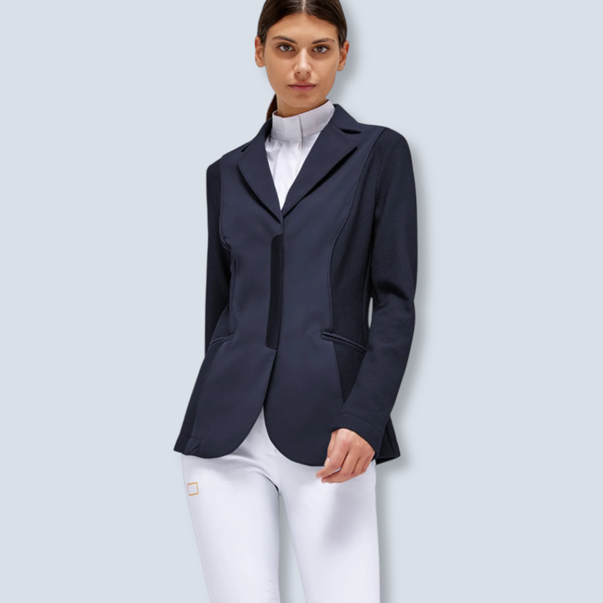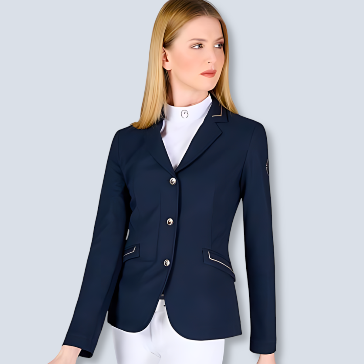 Our Women's Showjumping Jackets are the pinnacle of equestrian elegance—expertly tailored to sculpt, move, and perform. Crafted from ultra-lightweight, breathable technical fabrics, they offer unmatched freedom without sacrificing structure or style.