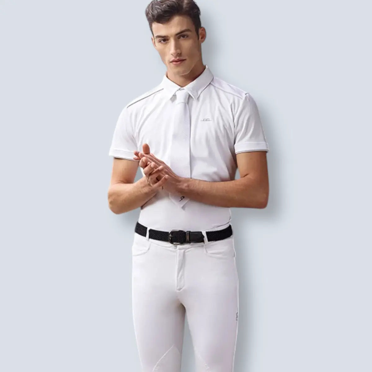 The AA Men’s CleanCool Short Sleeve Competition Shirt features advanced CleanCool fabric with antibacterial and cooling properties. It is lightweight, quick to absorb moisture, and dries fast. The shirt includes a button-down competition collar with a tie loop and mesh details on the shoulders for added breathability. Made from 100% CleanCool cotton polyester, the collar is non-iron, crafted from 87% nylon and 13% spandex. This shirt is easy to care for and machine washable.